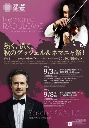 [出演] 指揮/サッシャ・ゲッツェルヴァイオリン/ネマニャ・ラドゥロヴィチ[曲目]リャードフ:ポロネーズ ハ長調op.49-プーシキンの思い出に-チャイコフスキー:ヴァイオリン協奏曲 ニ長調 op.35チャイコフスキー:交響曲第5番 ホ短調 op.64 今日は都…